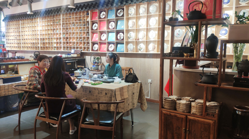 茶来茶往茶行位于绛县紫金山路中段,共三层阁楼,外观古色古香,店内装修精致典雅,融合了古典与现代风格,为茶友们提供了一个幽雅清新的品茗环境。开业当天,高朋满座,茶韵浓浓,满屋茶香,袭人肺腑。
